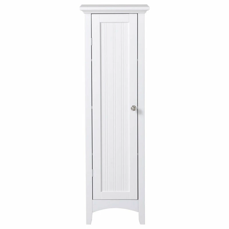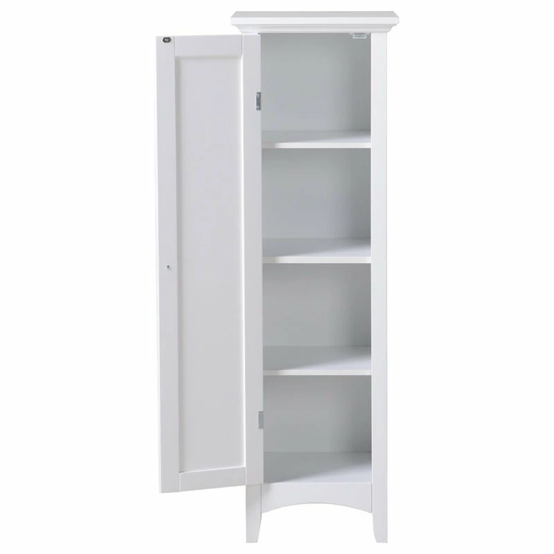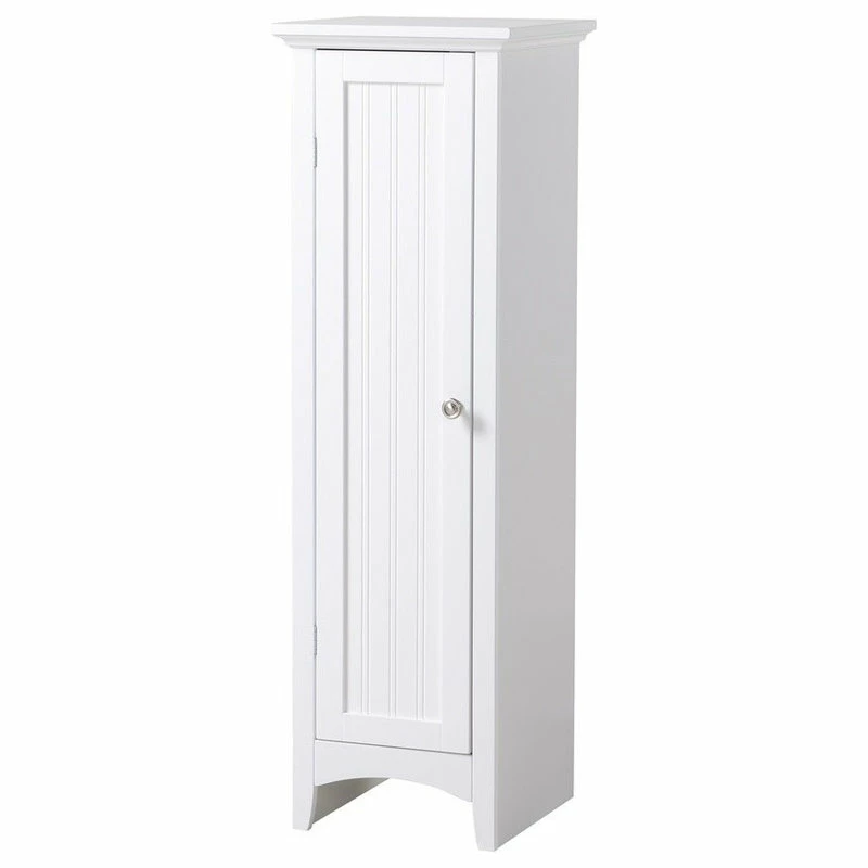 Add extra storage to your kitchen with the OS Home and Office Model 25501 White One Door Pantry. The classic painted raised panel door hides 3 adjustable and removable shelves. The brushed aluminum finished pull adds just the right flair.