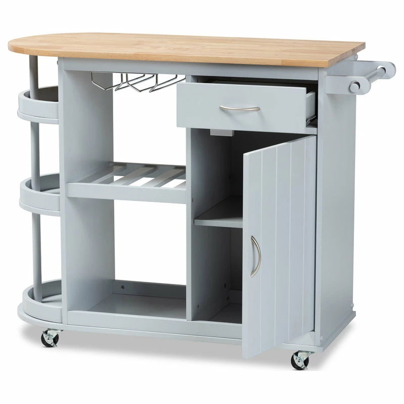 Baxton Studio Andmorra Coastal Gray Kitchen Cart