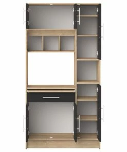 Every time you acquire new tools or appliances for your kitchen, the last thing you think of is the space where you will put your fancy new tool. When you arrive to your kitchen you find there is no space because the microwave is there, the toaster Is on that place or your utensil space is full. The solution to the problem is the Boahaus Montpellier kitchen pantry. The space conscious design makes it perfect fit on almost any kitchen. On top and two open compartments you can place the microwave, small oven, toaster or blender. The two doors cabinet space brings hidden storage for cookware, canned goods and many more. Crafted of manufactured wood with melamine veneers. Assembly is required.
