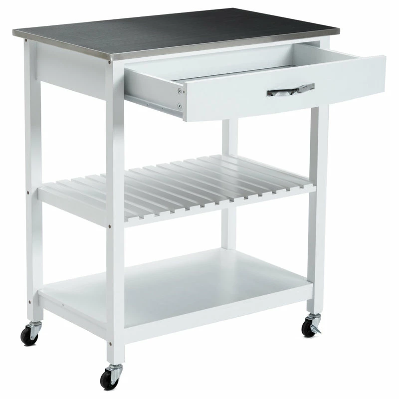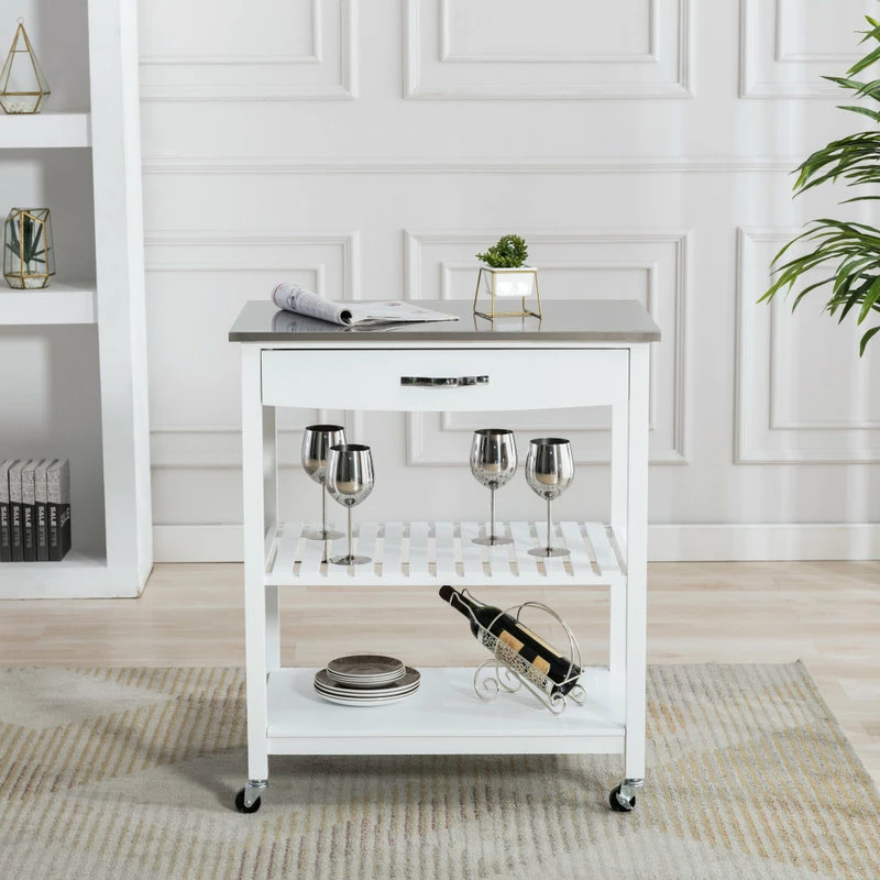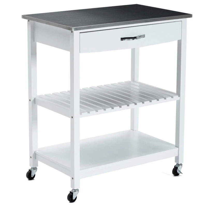 Boraam Industries, Inc. Holland Kitchen Cart With Stainless Steel Top, White