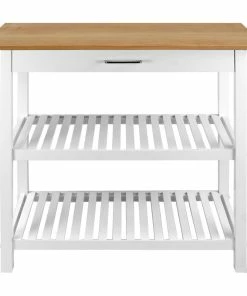 This Kitchen Island Cart is the perfect addition to any kitchen that could use some extra counter space. Its two-tone neutral color design gives it a modern appeal that highlights the natural beauty of the American Cherry top while complementing any current home decor. 2 shelves and a drawer provide multiple ways to keep your kitchen organized and all of your cooking essentials close at hand.