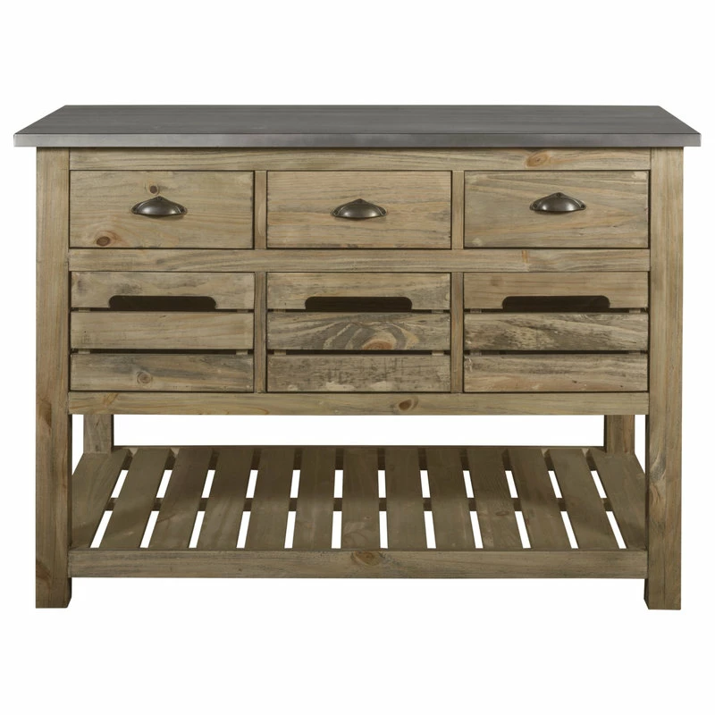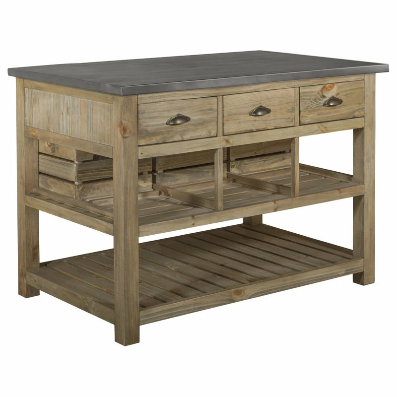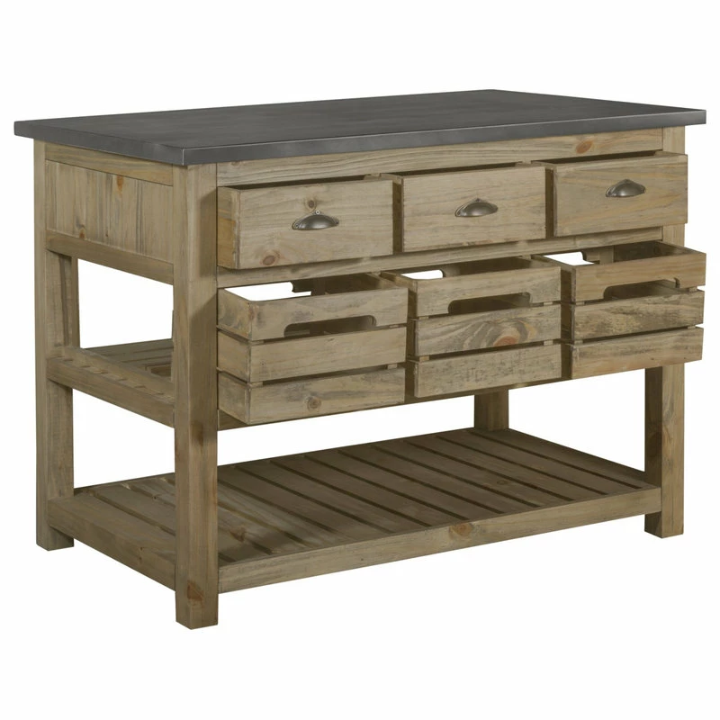 Barlow Kitchen Islands from Crafters and Weavers: Stylish Farmhouse Industrial Kitchen Islands with refinished reclaimed wood and zinc tops.