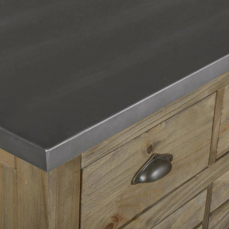 - Real zinc top. Cutting board is recommended, not designed for cutting directly on the surface