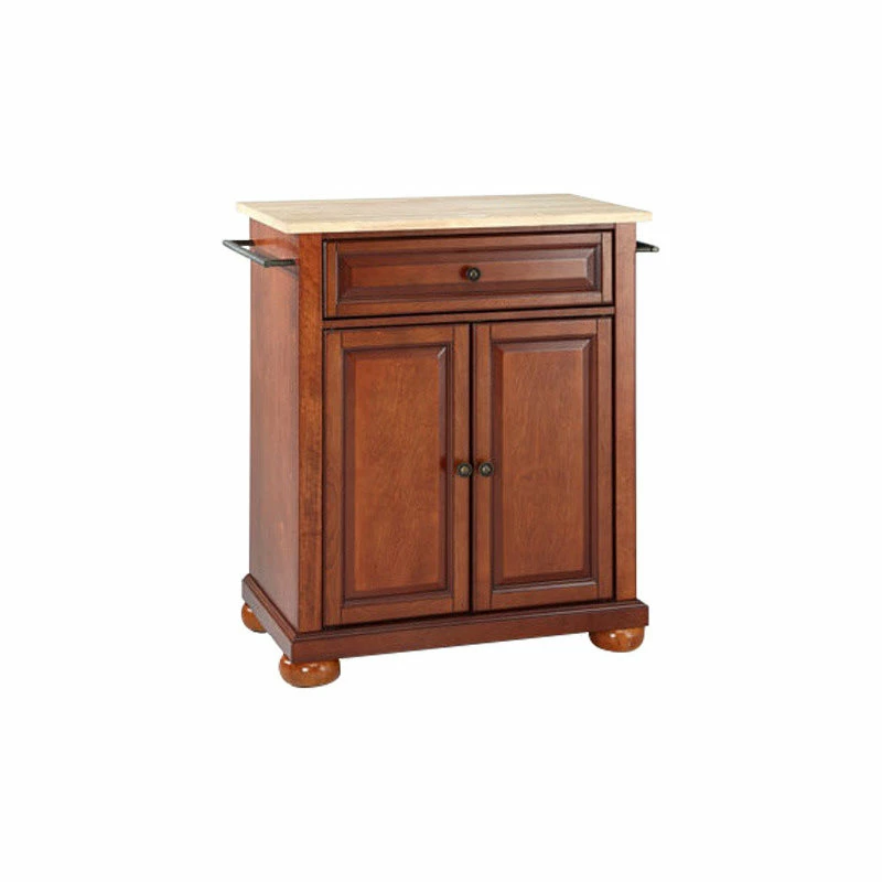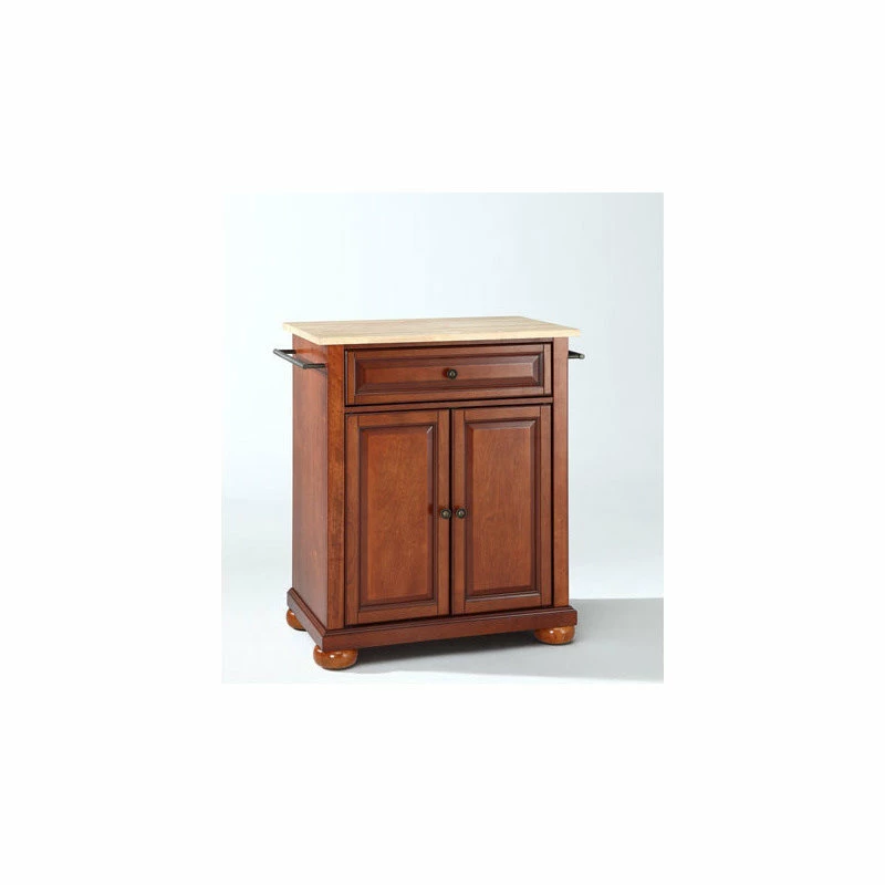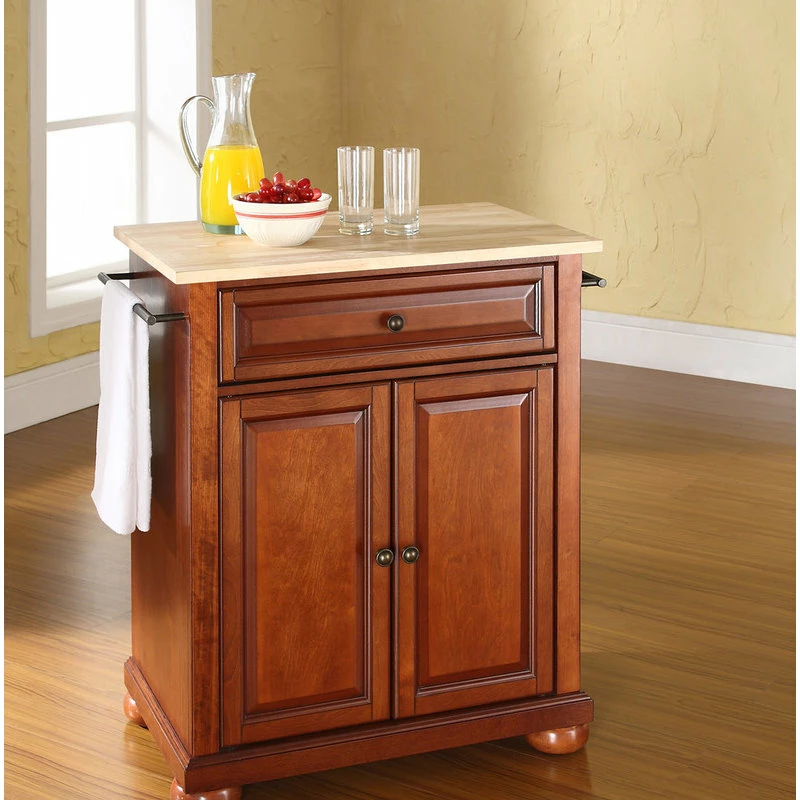 Crosley Alexandria Natural Wood Top Portable Kitchen Island, Classic Cherry Finish