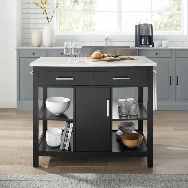 Crosley Audrey Faux Marble Top Kitchen Island Black/White Marble