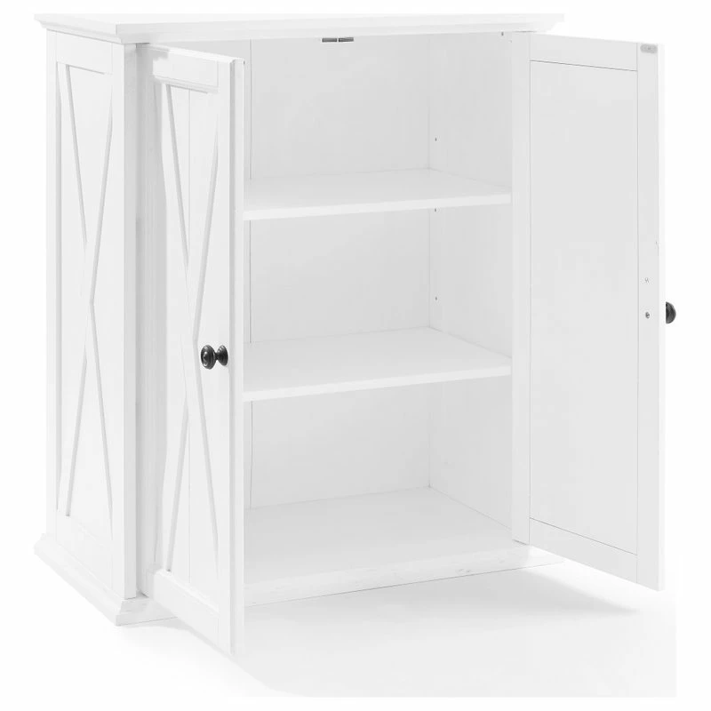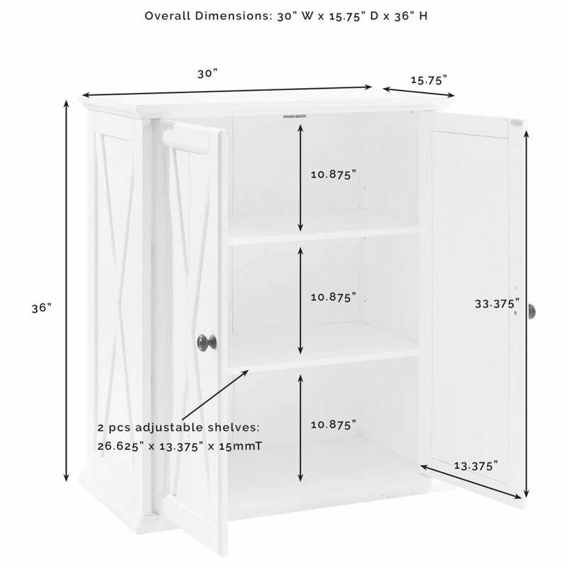 Bring stylish storage to your kitchen, utility room or laundry area with the Clifton Stackable Pantry. On its own, this small pantry offers two adjustable shelves that can accommodate a variety of items including dishes, linens, or cleaning supplies. Stack two together and you double your storage without taking up valuable floor space. The cabinet features an x-pattern on the doors that are inspired by modern farmhouse design and will add cottage charm to your home organization.