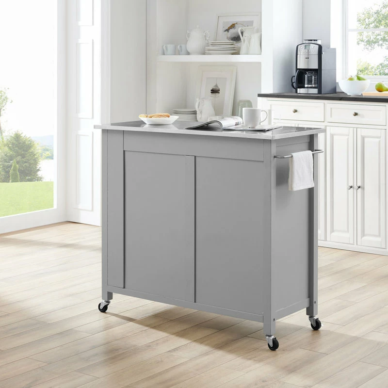 Crosley Savannah Stainless Steel Top Full-Size Kitchen Island Cart, Gray