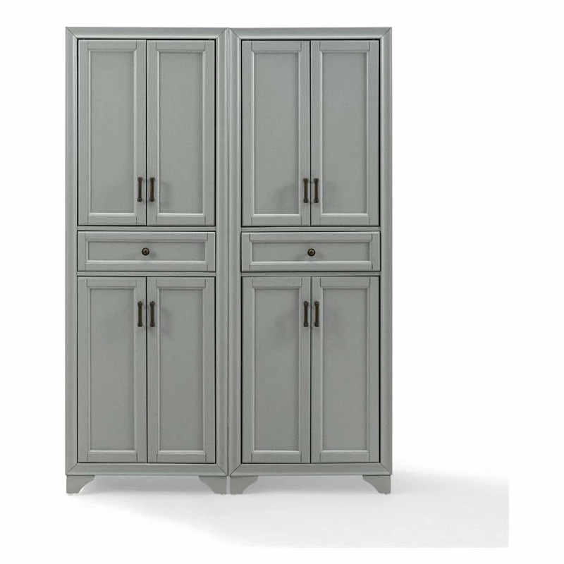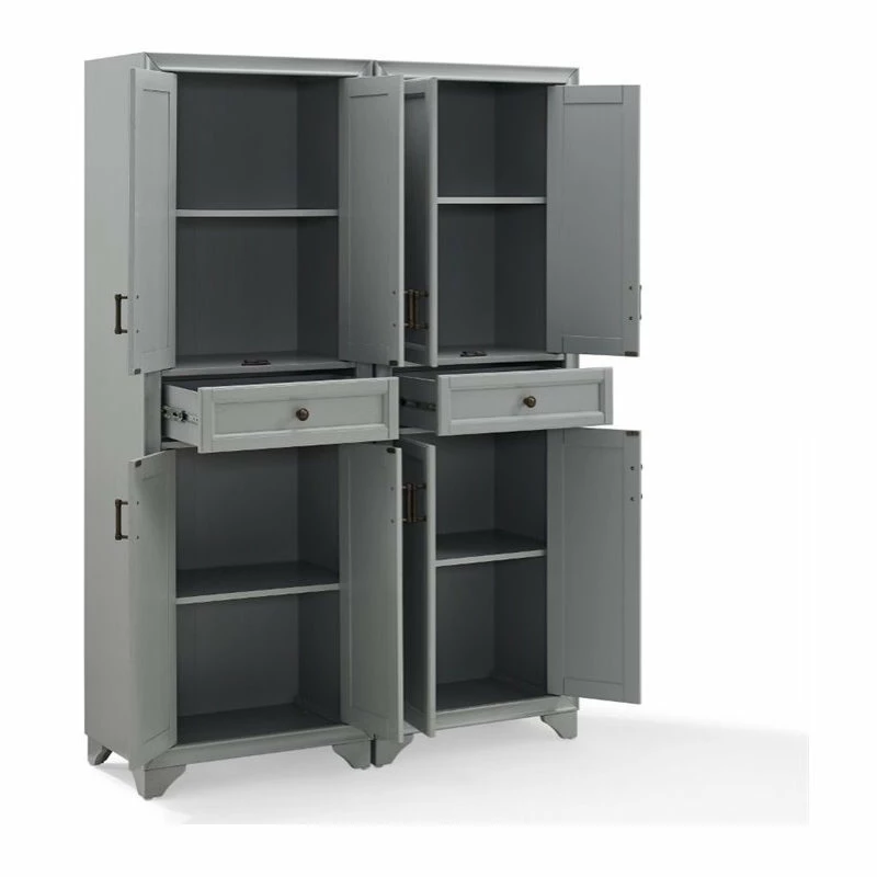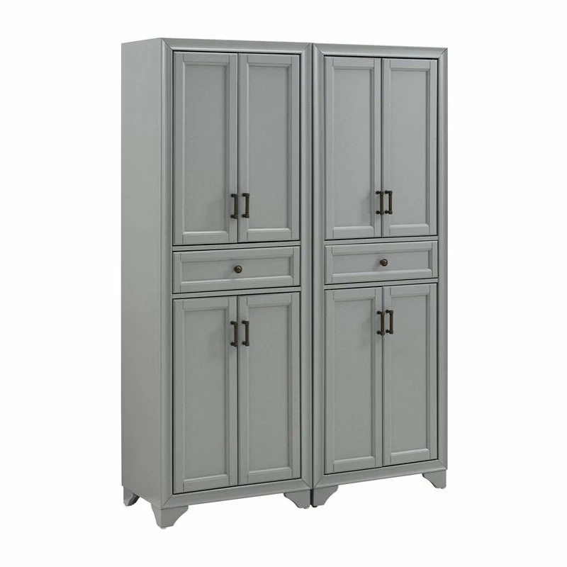 Simply charming and no longer solely a kitchen item, the Tara 2pc Pantry Set will add traditional elegance to any room without sacrificing functionality. While the adjustable shelving in the upper and lower cabinets is ideal for kitchenware or cleaning supplies, it also makes a great place to store extra blankets, books, and board games. The cabinets feature beautiful metal hardware, as does the large full-extension storage drawer on ball-bearing glides. Placed at the center of the pantry, the storage drawer can be a great catch-all for odds and ends, making the Tara 2pc Pantry Set a perfect go-to for home organization.