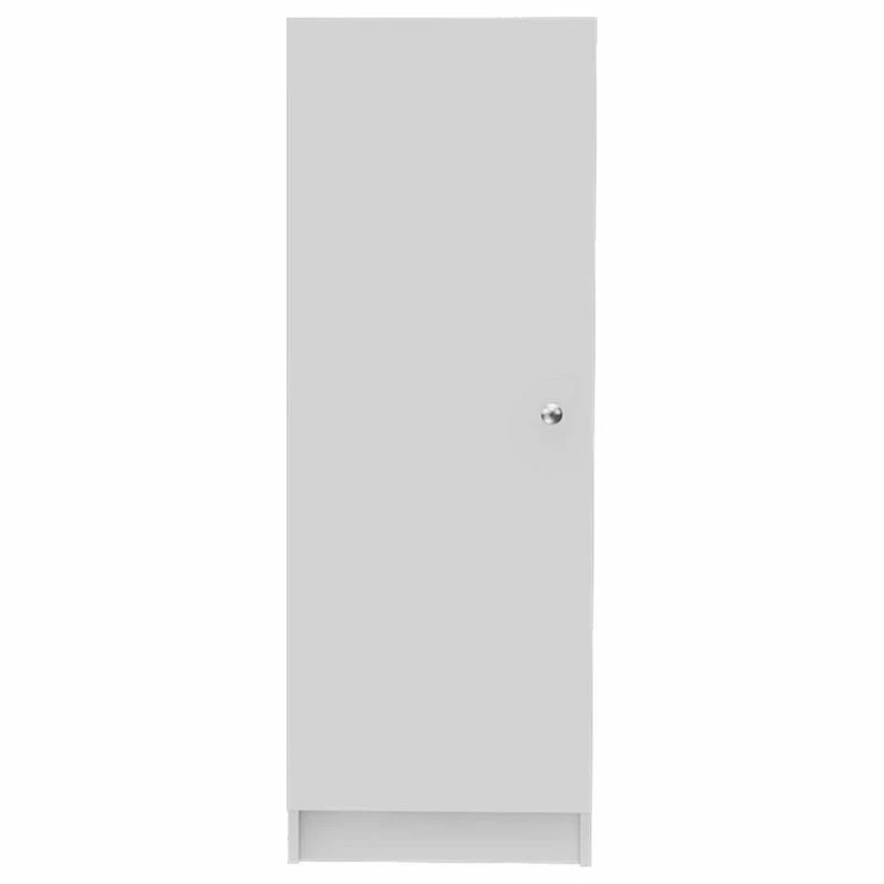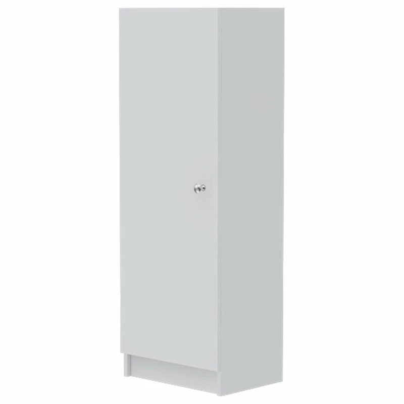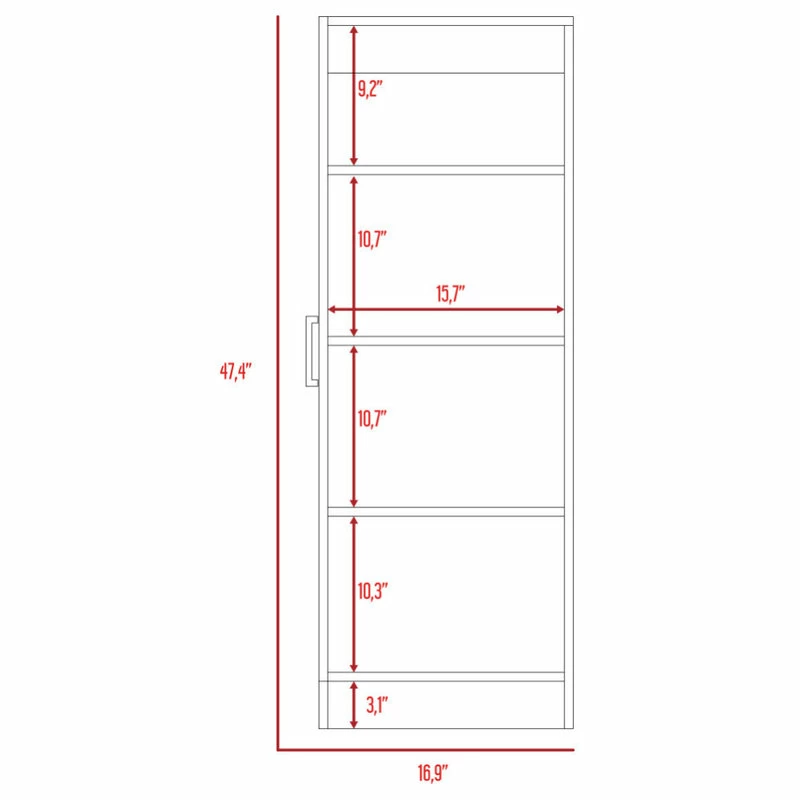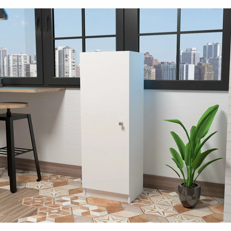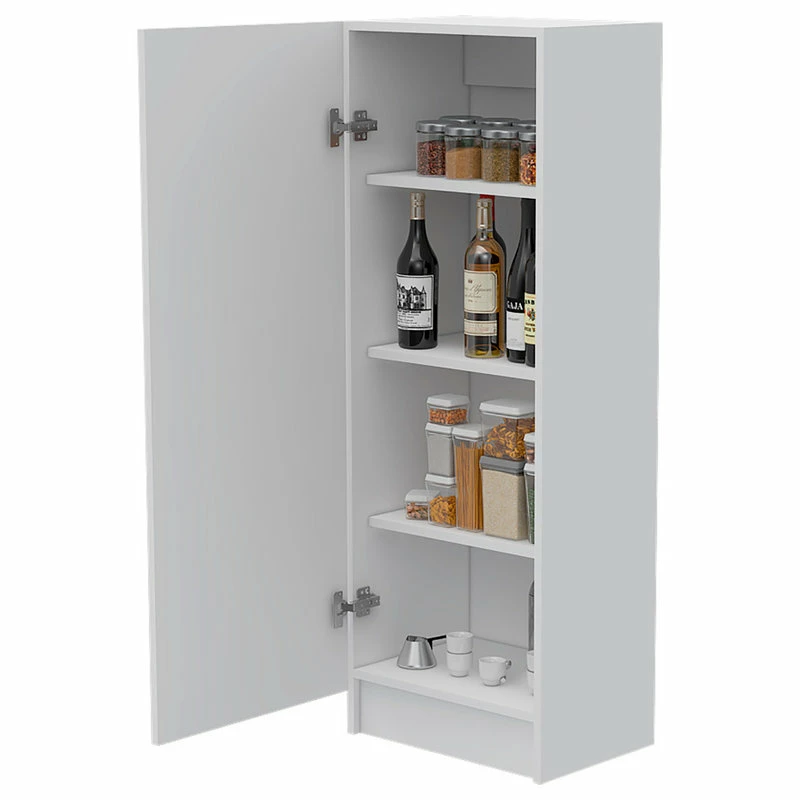 Can´t you find any Pantry cabinet that fits in the room you need it? Excellent addition to your kitchen, the Miami pantry is designed to fit effortlessly into your cooking setting. Its one-door shields off four shelves that provide storage space for spices, bottles, ingredients, and other kitchen items that you may need or use frequently. Its size will allow you to use it in your kitchen, garage, or mudroom without getting in the way or taking too much space. This pantry is made of particle board with a White finish a metal chrome doorknob. Dimensions are 47.4″ H x 16.9″ W x 12.3″ D, each rack from the bottom up are 10.3″ H, 10.7″H, 10.7″ H and 9.2″ H.