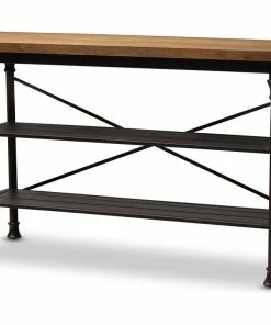 Baxton Studio Nils Rustic Industrial Wood And Dark Bronze Metal Kitchen Storage Shelf Unit