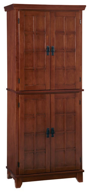 Clean up the kitchen or any space and achieve a higher level of style with this Homestyles Arts & Crafts Pantry. The vertical storage makes the most of smaller spaces, stacking up the storage behind four large doors. The premium veneer and engineered wood create a durable storage solution that will be a showcase in your home for years.