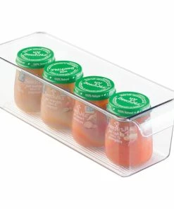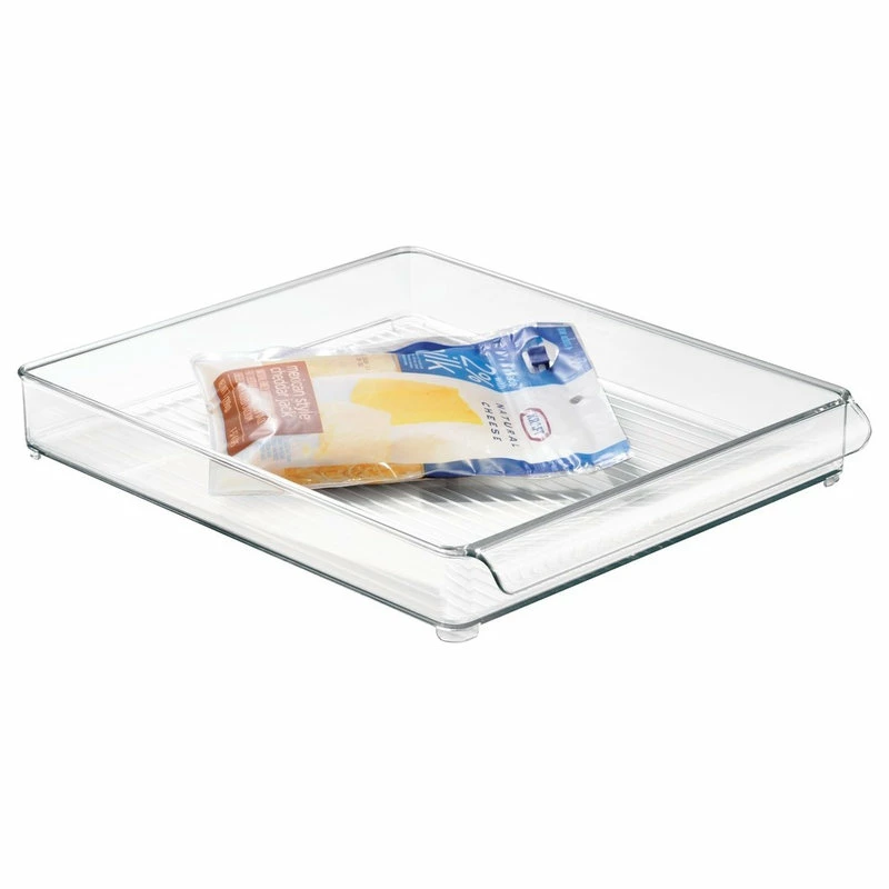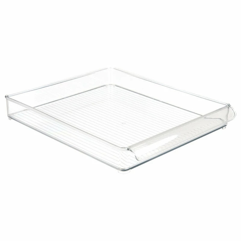 Organize your fridge with the iDesign Refrigerator Bin! This set makes it easy to see the contents of your fridge. With a built in handle, you can easily slide the bin on and off of the refrigerator shelfs. Made of strong plastic, the bins are durable for years of use. Binz measure 12″ x 2″ x 14.5″.