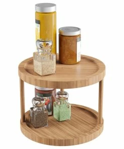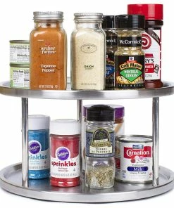 CTE Jiallo Stainless Steel Lazy Susan, 2-Tier Turntable Organizer