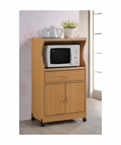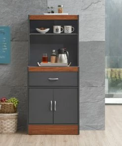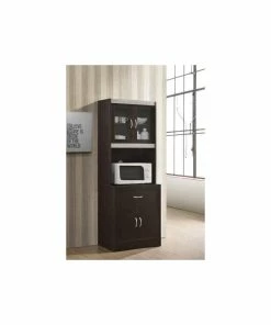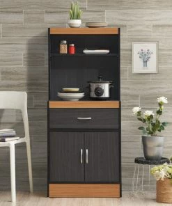 Hodedah Import Inc. Kitchen Cabinet With 1-Drawer, Plus Space For Microwave, Black-Beech