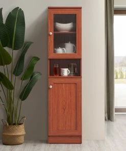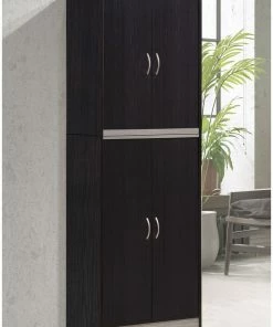 Hodedah Import Inc. Hodedah 4 Door Kitchen Pantry With 4 Shelves 5 Compartments In Cherry Wood