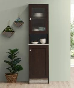 Hodedah Import Inc. 63″ Tall Open Shelf Enclosed Storage Kitchen Pantry, Chocolate-Gray