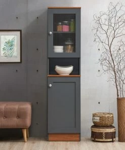 Hodedah Import Inc. 54″ Tall Open Shelves Enclosed Storage Kitchen Cabinet, Gray-Oak