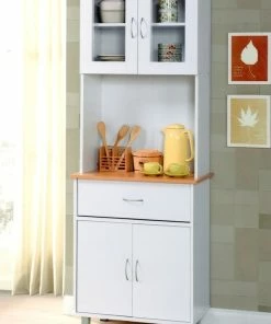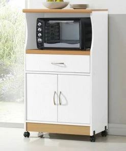Homeroots Kitchen & Dining White Finish Wood Microwave Cabinet With Two Doors And Drawer