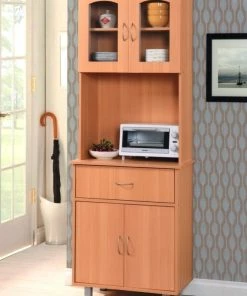 HOMARY Farmhouse Kitchen Shelf, Walnut For Microwave, Natural