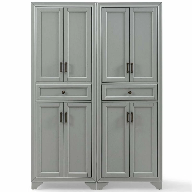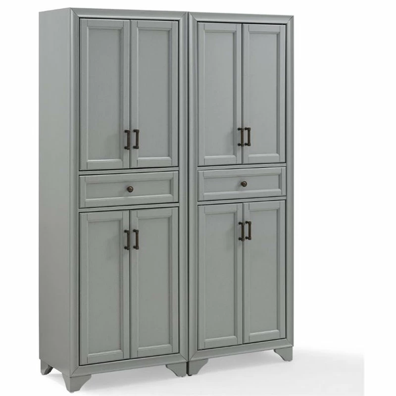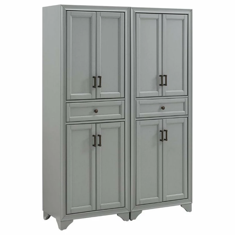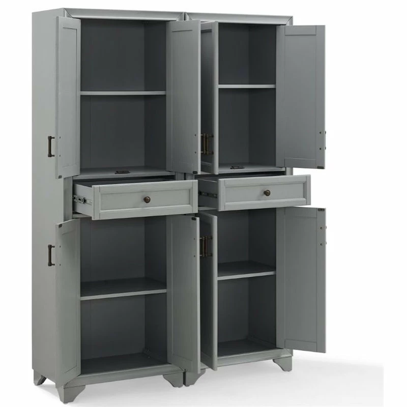 Simply charming and no longer solely a kitchen item, this 2 piece pantry set will add traditional elegance to any room without sacrificing functionality. While the adjustable shelving in the upper and lower cabinets is ideal for kitchenware or cleaning supplies, it also makes a great place to store extra blankets, books, and board games. The cabinets feature beautiful metal hardware, as does the large full-extension storage drawer on ball-bearing glides. Placed at the center of the pantry, the storage drawer can be a great catch-all for odds and ends, making the2 piece pantry set a perfect go-to for home organization.