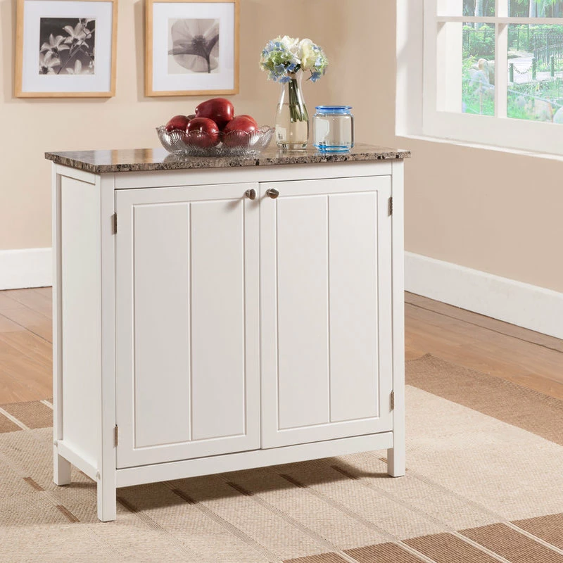 Blake Kitchen Island Cabinet With Adjustable Storage Shelf, White & Marble Wood, Contemporary. Simple and sturdy, the Blake Kitchen Island Cabinet comes with personality and charm. The island boosts a two door cabinet for storage, a clean marble countertop and chrome knobs. Ideal as a prep or serving space, the Blake Kitchen Island Cabinet will pair well with your home decor style. Behind the doors you will find one adjustable shelf and an abundance of storage space for things that you prefer to be out of sight.