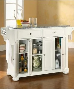 Crosley Alexandria Solid Granite Top Kitchen Island, White Finish