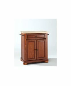 Crosley Alexandria Natural Wood Top Portable Kitchen Island, Classic Cherry Finish