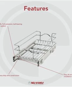 Rev-A-Shelf Single Tier Bottom Mount Pull Out Steel Wire Organizer, 11.75″
