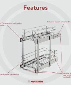 Rev-A-Shelf Two-Tier Bottom Mount Pull Out Steel Wire Organizer, 20.75″