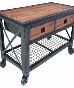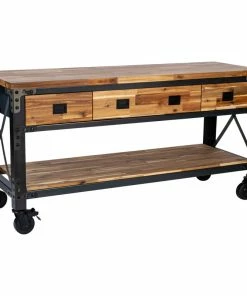 Duramax Darby 72″ Industrial Metal & Wood Kitchen Island Desk With Drawers