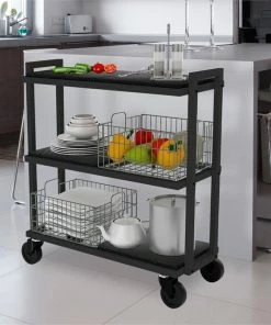 Atlantic Inc Atlantic Narrow Large Metal And Wire Cart System 3-Tier In Black