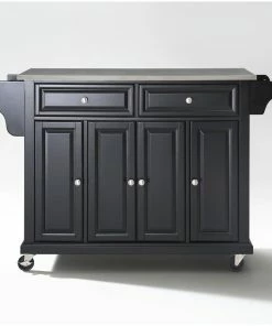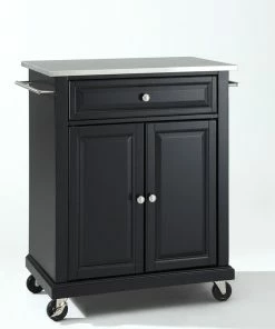 Crosley Stainless Steel Top Portable Kitchen Cart/Island, Black Finish