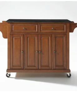 Crosley Solid Black Granite Top Kitchen Cart/Island, Classic Cherry Finish