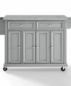 Crosley Solid Granite Top Portable Kitchen Cart/Island, White Finish