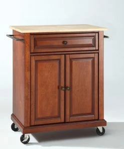 Crosley Natural Wood Top Portable Kitchen Island Cart, Classic Cherry
