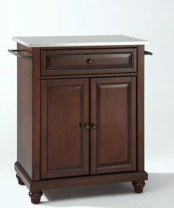 Crosley Cambridge Stainless Steel Top Portable Kitchen Island, Vintage Mahogany Finish