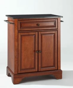 Crosley LaFayette Solid Black Granite Top Portable Kitchen Island, Classic Cherry