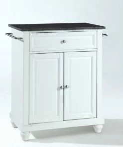 Crosley Cambridge Solid Black Granite Top Portable Kitchen Island, White Finish