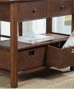 Crafters And Weavers Mission 3 Drawer Oak Kitchen Island, Walnut (AW)