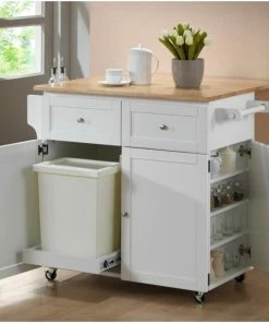 Bowery Hill Kitchen Cart With Drop Leaf In Natural Brown And White