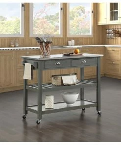 Convenience Concepts American Heritage Stainless Steel Top Kitchen Cart In Gray Wood Finish