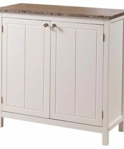 Pilaster Designs Blake Kitchen Island Cabinet With Adjustable Storage Shelf, White & Marble Wood