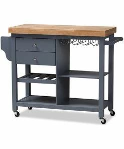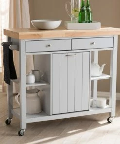 Baxton Studio Sunderland Coastal And Farmhouse Gray Wood Kitchen Cart