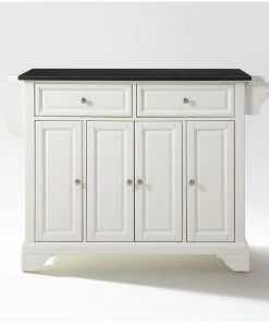 Crosley LaFayette Solid Black Granite Top Kitchen Island, White Finish
