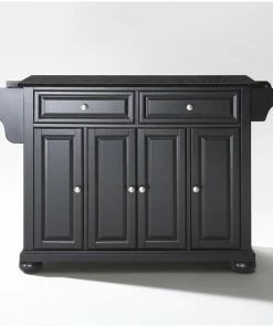 Crosley Alexandria Solid Black Granite Top Kitchen Island, Black