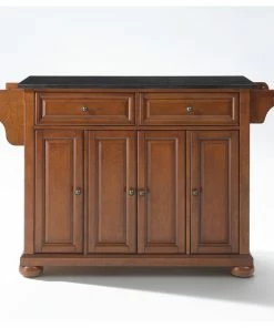 Crosley Alexandria Solid Black Granite Top Kitchen Island, Classic Cherry