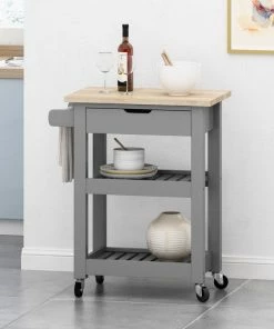GDFStudio Tattnall Dade Kitchen Cart With Wheels, Grey/Natural