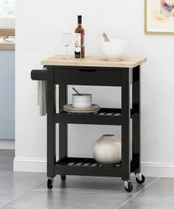 GDFStudio Tattnall Dade Kitchen Cart With Wheels, Black/Natural