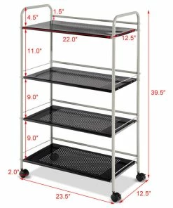 Costway 4 Tier Storage Rack Trolley Cart Home Kitchen Organizer Baskets Sliver