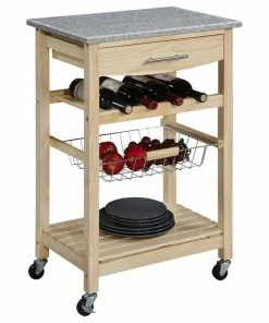 Linon Home Decor Products Linon Natalie Wood And Granite Top Kitchen Cart In Natural Brown